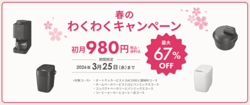 | ホームベーカリービストロとパンミックスコース | 月額2,980円 | 春のわくわくキャンペーン |