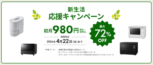 | オーブントースタービストロと冷凍パンコース | 月額2,980円 | 新生活応援キャンペーン |